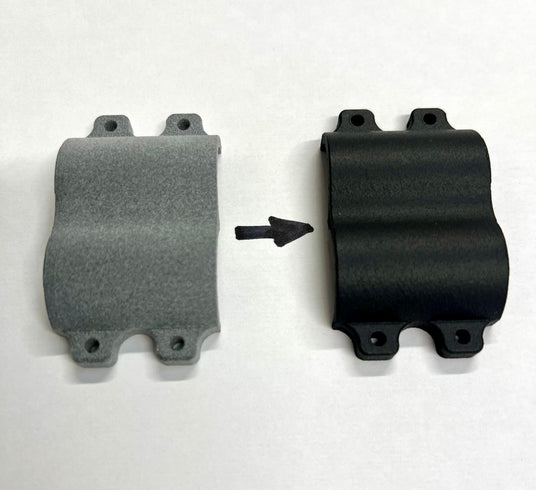 MJF Pa12 Nylon parts in their raw form are a light grey colour. This can be fine for use in internal parts. Most of the parts we provide to manufacturers though are post-dyed. The light grey surface is dyed through so if during the parts' life it is scratched the underlying material will also be black.